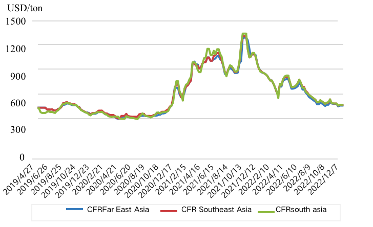 Figura 1. Gráfico de precios del ácido acético en Asia de 2019 a 2022