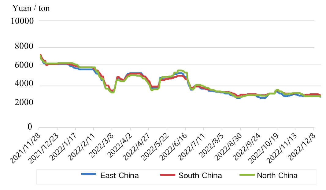 Figura 2. Gráfico de tendencia del precio del ácido acético doméstico de 2019 a 2022