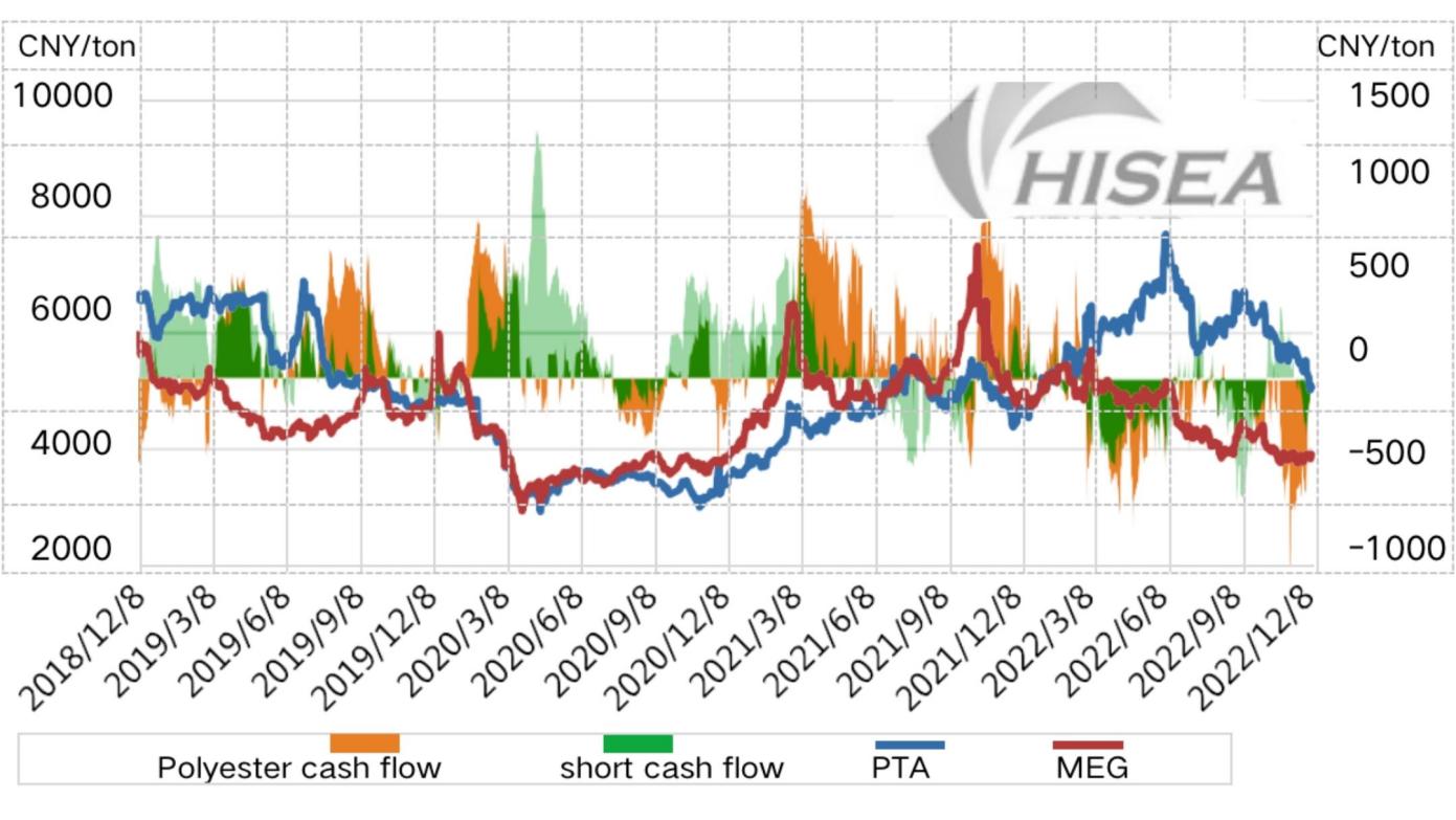 Durante el período (20221202-1208) de este ciclo, el mercado del poliéster en su conjunto subió y bajó, con tendencias mixtas de precios de mercado y transacciones de mercado.desordenado.Desde el punto de vista upstream, durante este período, el mercado sopesa la expectativa de OPEP + estrategia de reducción de producción y el arrastre de la demanda de la epidemia local global.A pesar de que OPEP+ insiste en promoviendo los recortes de producción y los inventarios comerciales de petróleo crudo de EE. UU. continúan disminuyendo, el mercado está preocupado de que la Fed aún pueda aumentar agresivamente las tasas de interés.Inventarios de petróleo refinado Crecimiento sustancial, superpuesto a las preocupaciones constantes del mercado sobre la recesión económica mundial, el petróleo crudo europeo y estadounidense cayó bruscamente durante este período, y el lado del costo agregado es relativamente negativo.Desde la perspectiva de las materias primas directas, a partir de Diciembre 8 , el precio de mercado de PTA tirado 5,095 yuan/tonelada .