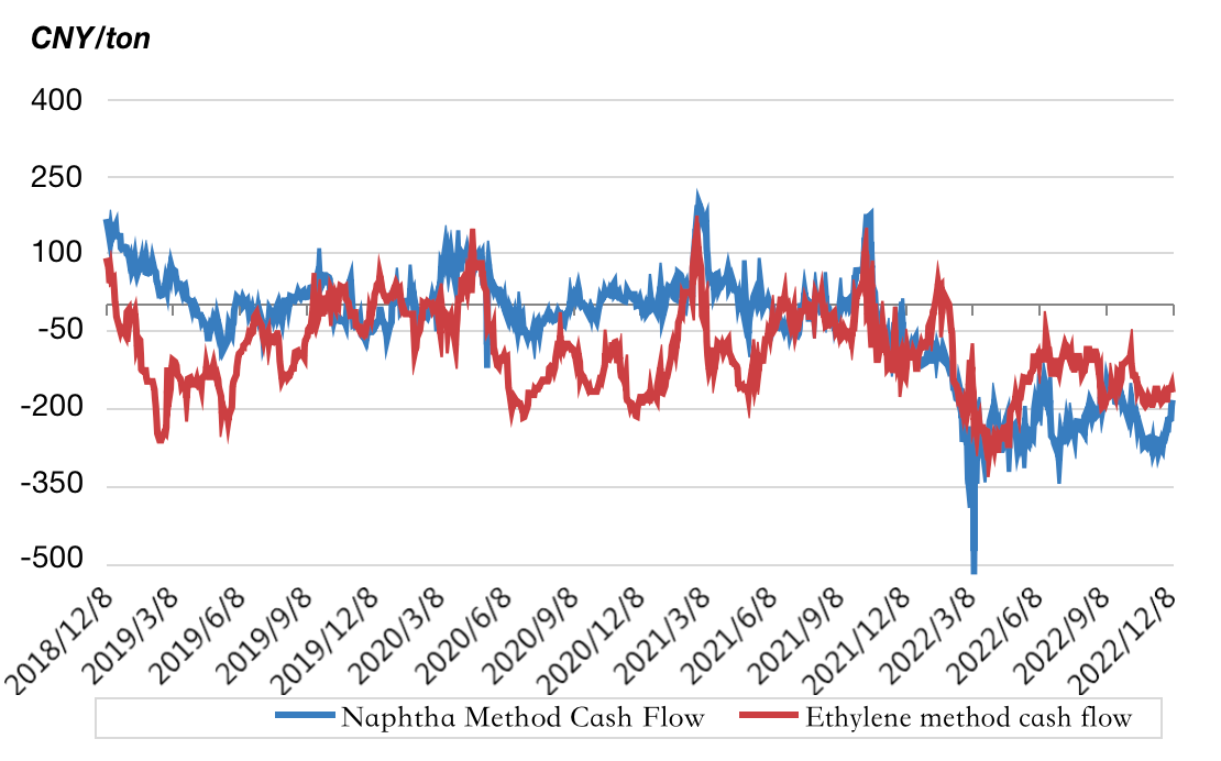 Esta semana, el flujo de caja del etilenglicol a base de nafta siguió perdiendo dinero.Hasta el jueves, el efectivo instantáneo integrado de etilenglicol era de US$ 184.23 / tonelada, y el flujo de efectivo semanal promedio fue de US$212,13, lo que representó un aumento significativo con respecto a la semana pasada.El flujo de caja no integrado también ha repuntado.A partir del jueves, el flujo de caja inmediato en el mercado externo rondaba - 168.45 dólares estadounidenses / tonelada, y el flujo de caja promedio semanal fue - 163.21 yuan/tonelada.
