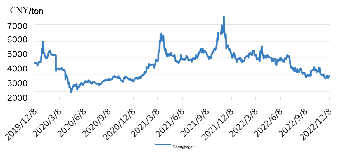 Zhangjiagang | 45.43 | 44.13 | -1.30 | -2,86% |